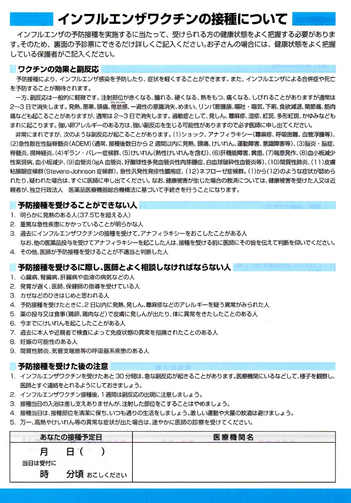 インフルエンザ予防接種説明書 (クリックするとPDFが開きます)