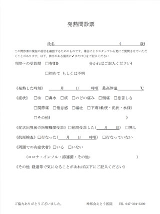 1. 予診票はすべて記入の上、ご来院ください(ご来院前に検温も済ませてください)。