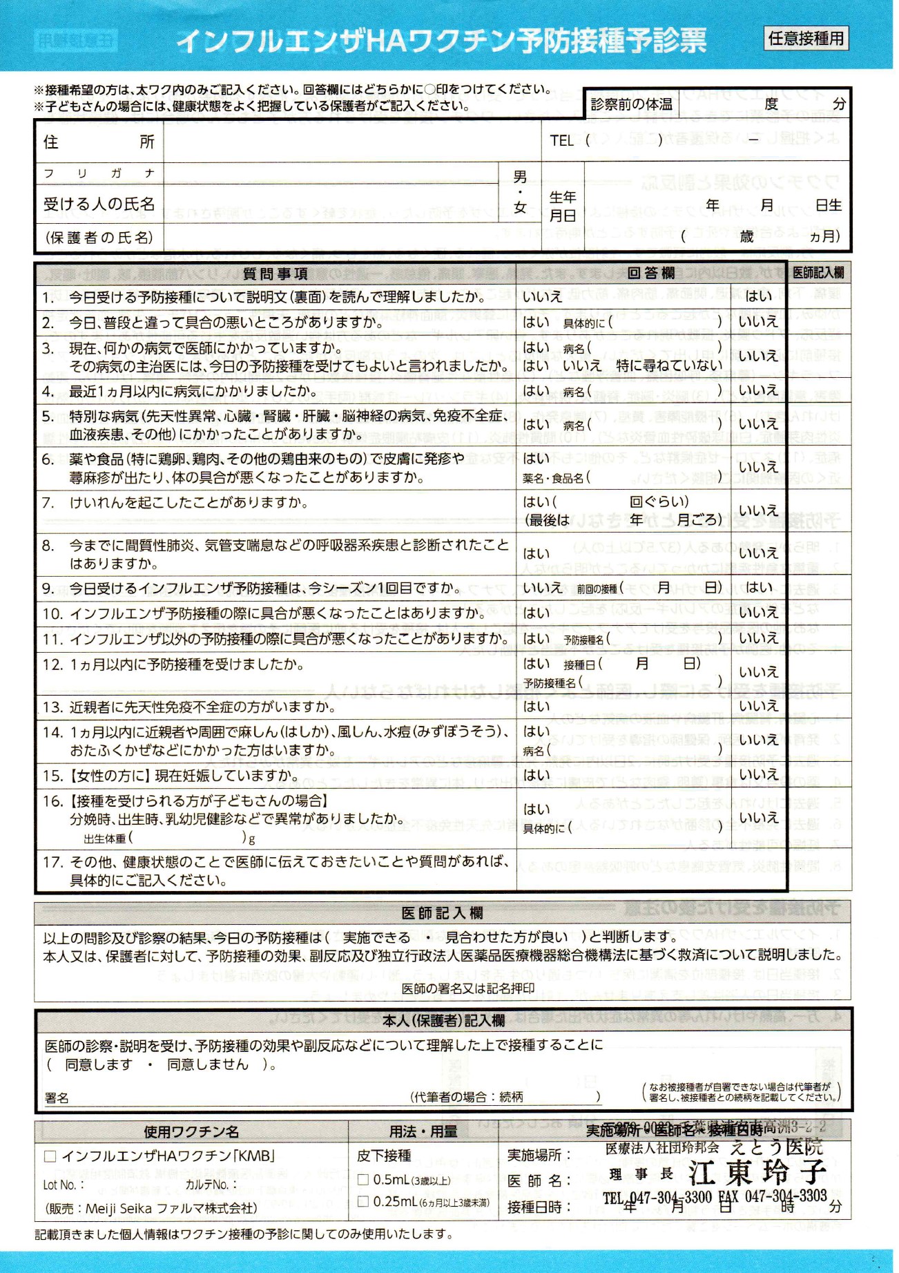 インフルエンザ予防接種予診票 (クリックするとPDFが開きます)